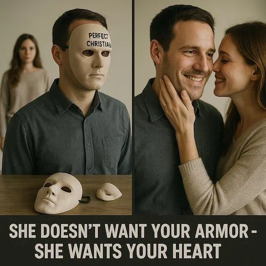 When you quit hiding behind the "strong Christian man" mask and let her see the real you... the broken, searching, beautifully human you...